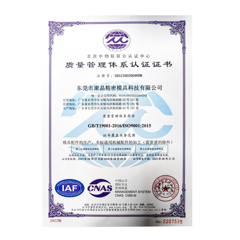公司具有(yǒu)ISO9001:2015認證(GB/T19001-2016/ISO9001:2015)。